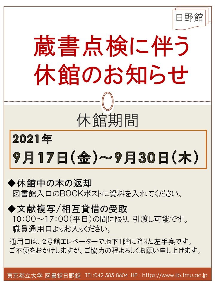 蔵書点検期間中も受け付けますが、対応は蔵書点検終了後となります。
