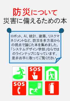 日野館所蔵の防災関連資料には、ロボット・AI・建築・デザイン・リスクマネジメントなど、「システムデザイン学部」で研究している分野から切り込んだ興味深い本が多数あります。