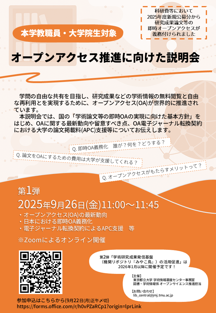 【終了しました】9/26(金)オープンアクセス推進に向けた説明会 第1弾のお知らせ